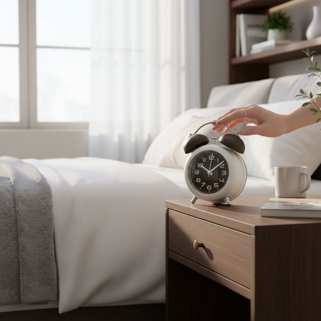 Pas de tic-tac envahissant, juste un objet élégant qui veille discrètement sur vos nuits et s’intègre parfaitement dans une chambre calme et soignée.