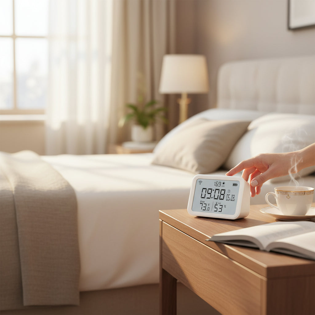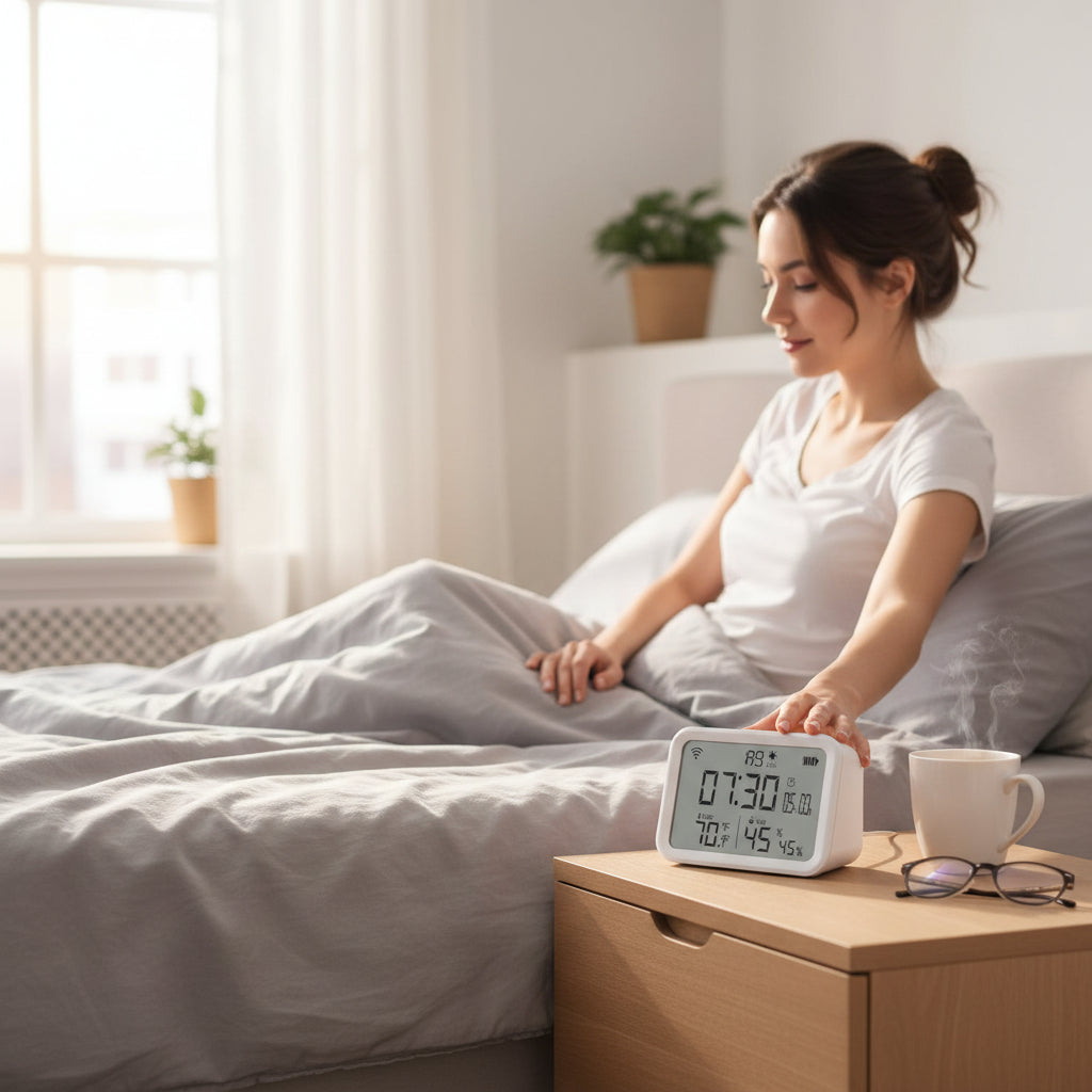 Ce réveil connecté affiche en temps réel la température et l'humidité de votre chambre pour un sommeil vraiment optimal.