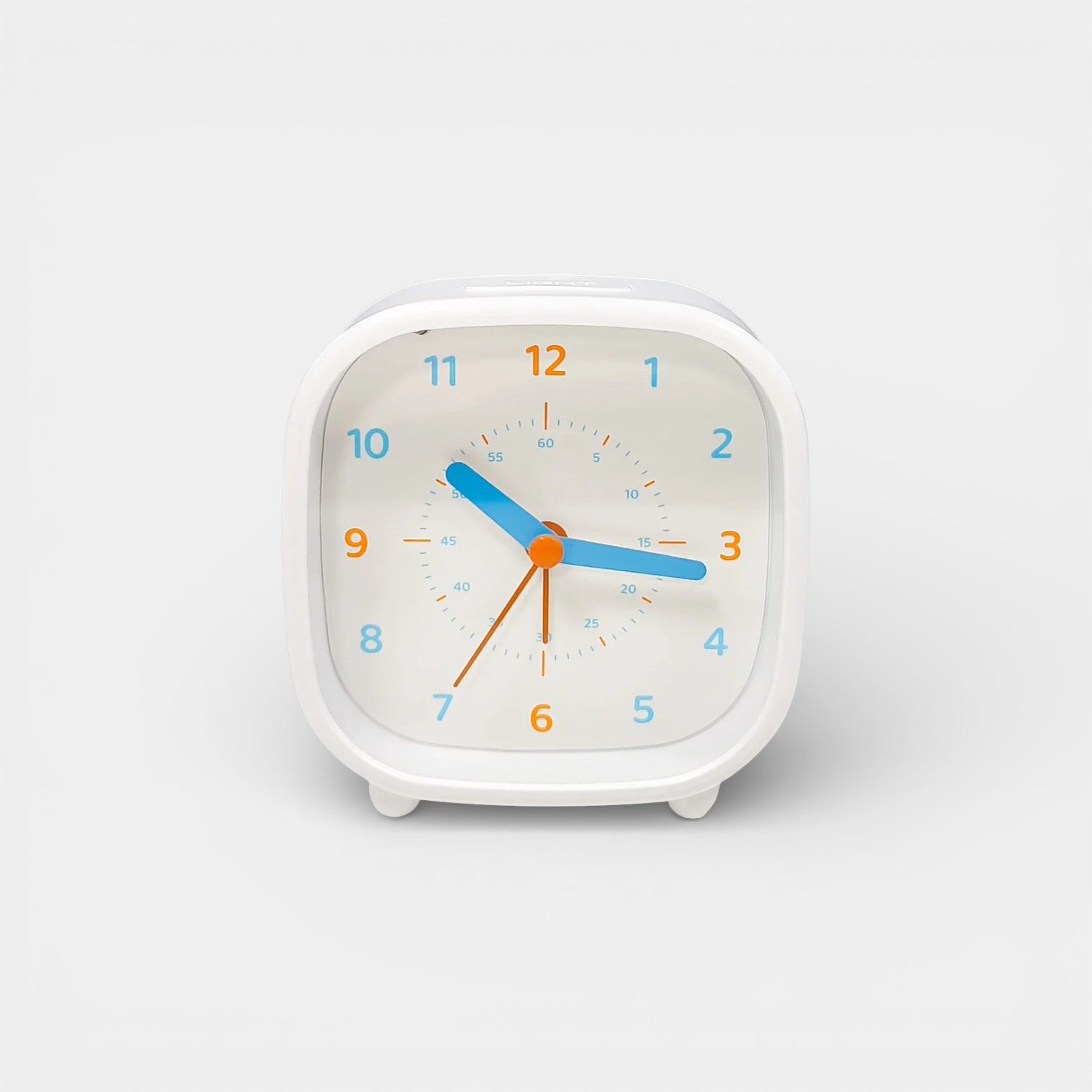 Ce réveil a été pensé pour les enfants qui commencent à se repérer dans le temps, vers 7-8 ans, et qui veulent gagner en autonomie. Avec ses chiffres bien visibles et son cadran clair, votre enfant apprend progressivement à lire l'heure tout seul, sans stress. Le réveil l'aide à respecter ses horaires de lever, de repas et de coucher, et à comprendre la notion du temps au quotidien. La fonction snooze lui permet aussi de profiter de quelques minutes de plus le week-end, tout en apprenant à gérer son réveil. Le design coloré et joyeux rend le réveil attractif : votre enfant a envie de l'utiliser, et ça change tout. Fini les négociations interminables le matin, il sait maintenant quand il est l'heure de se lever.