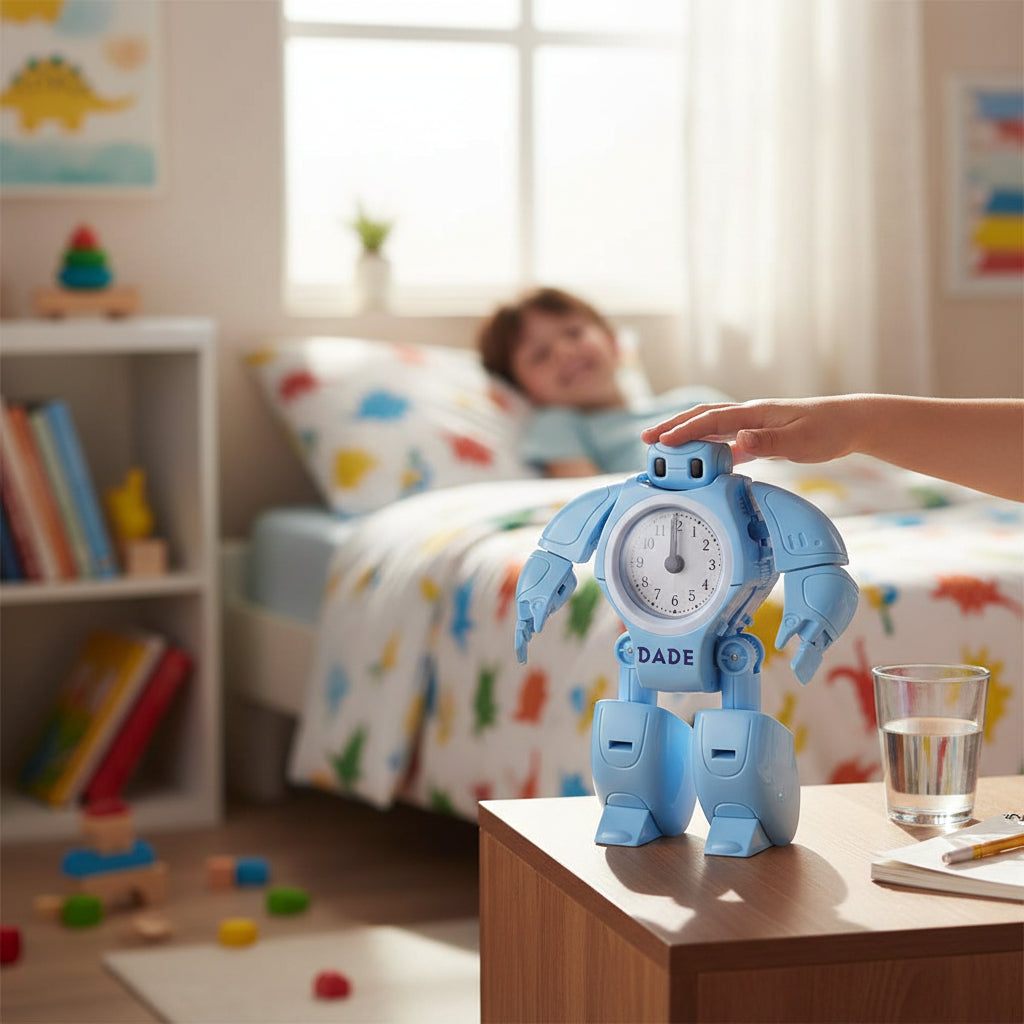 Votre fils rêve de robots et a du mal à se lever le matin ? Ce réveil garçon robot analogique transforme son réveil en vrai compagnon d'aventure, tout en l'aidant à apprendre à lire l'heure avec les aiguilles.