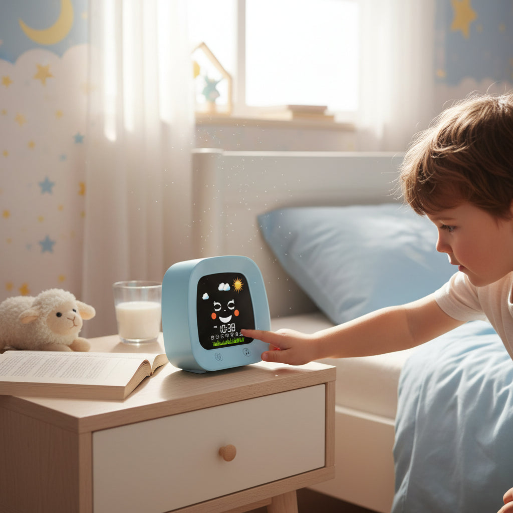 Simple à utiliser et pensé pour les enfants, ce réveil éducatif accompagne les routines du soir et du matin, pour un sommeil plus régulier au quotidien.