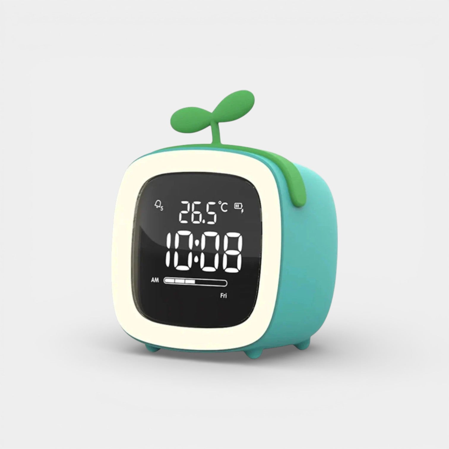 Ce réveil veilleuse enfant séduit par son design original et rassurant. Sa feuille décorative évoque la nature et crée une ambiance apaisante dans la chambre. L'affichage numérique LED permet à votre enfant de visualiser facilement l'heure et la température ambiante, tandis que le rétro-éclairage doux accompagne l'endormissement sans éblouir. Disponible en trois coloris tendres (bleu apaisant, gris neutre, rose joyeux), il s'intègre parfaitement dans tous les univers de chambre d'enfant.